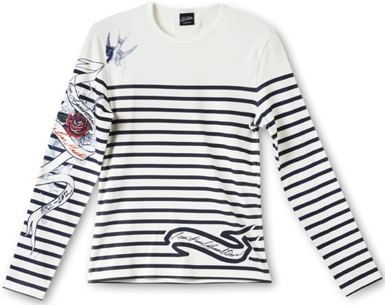 Jean-Paul Gaultier réinterprète sa célèbre marinière en coton « Bon anniversaire le Bon Marché » au prix de 195€.