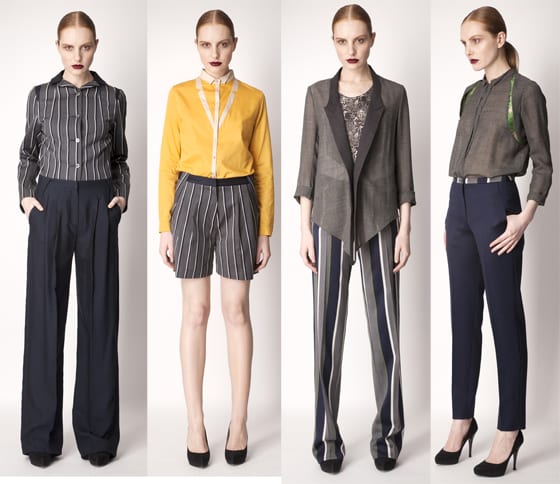 En découvrant cette première collection, on remarque immédiatement des univers opposés qui se combinent à merveille, l’avant-gardisme, le classicisme, la décontraction, la rigueur, le masculin féminin et l’hyper féminin.