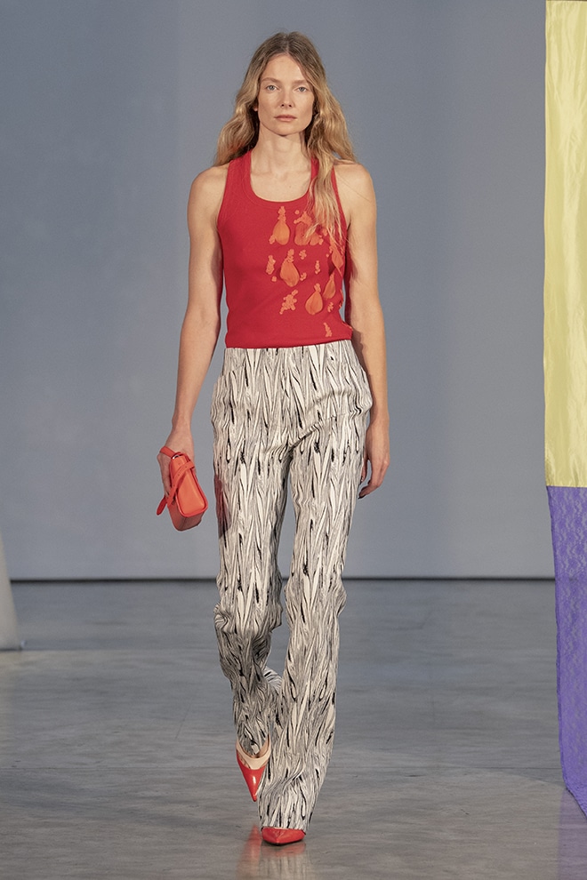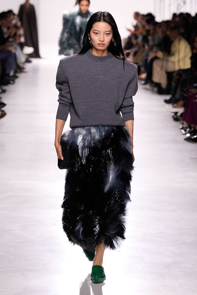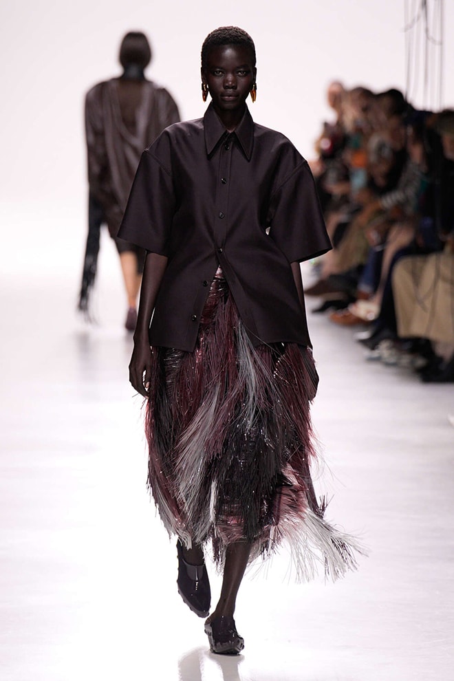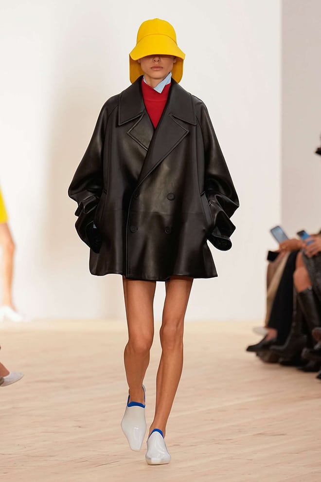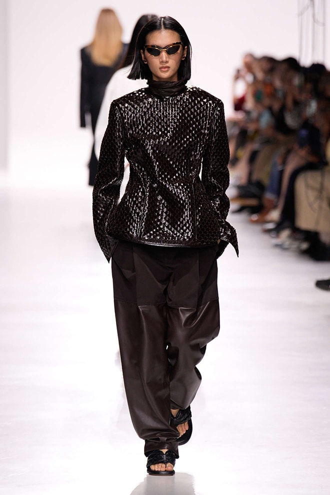 Succédant à Matthieu Blazy, parti chez Chanel, Trotter revisite les grands classiques de la maison avec une approche résolument contemporaine. Si le cuir reste un pilier de l’ADN Bottega, elle introduit également des pièces aux couleurs vives, réalisées à partir de fibres de verre recyclées, donnant naissance à une garde-robe pointue, urbaine et consciente.