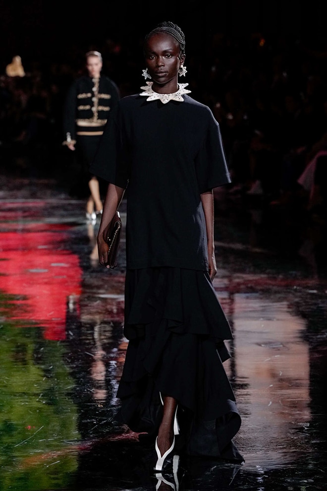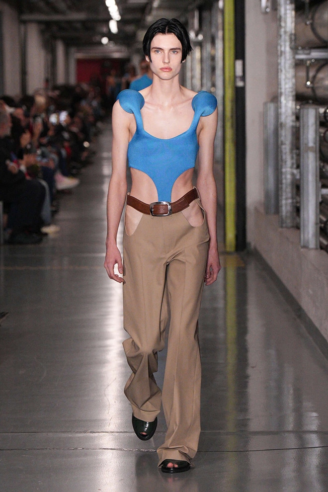 Diplômé de Central Saint Martins, passé par des maisons prestigieuses telles que Dior, Saint Laurent, Lanvin, Sportmax et Dries Van Noten, Freitas livre une première collection solide, en jouant avec les codes emblématiques de Mugler, tout en y injectant une sensualité plus contemporaine.