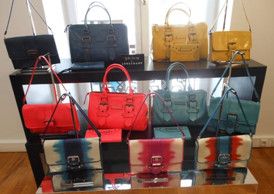 Longchamp c’est aussi la ligne de sacs Kate Moss qui n’hésite pas encore à dynamiser les collections par des couleurs flashy.