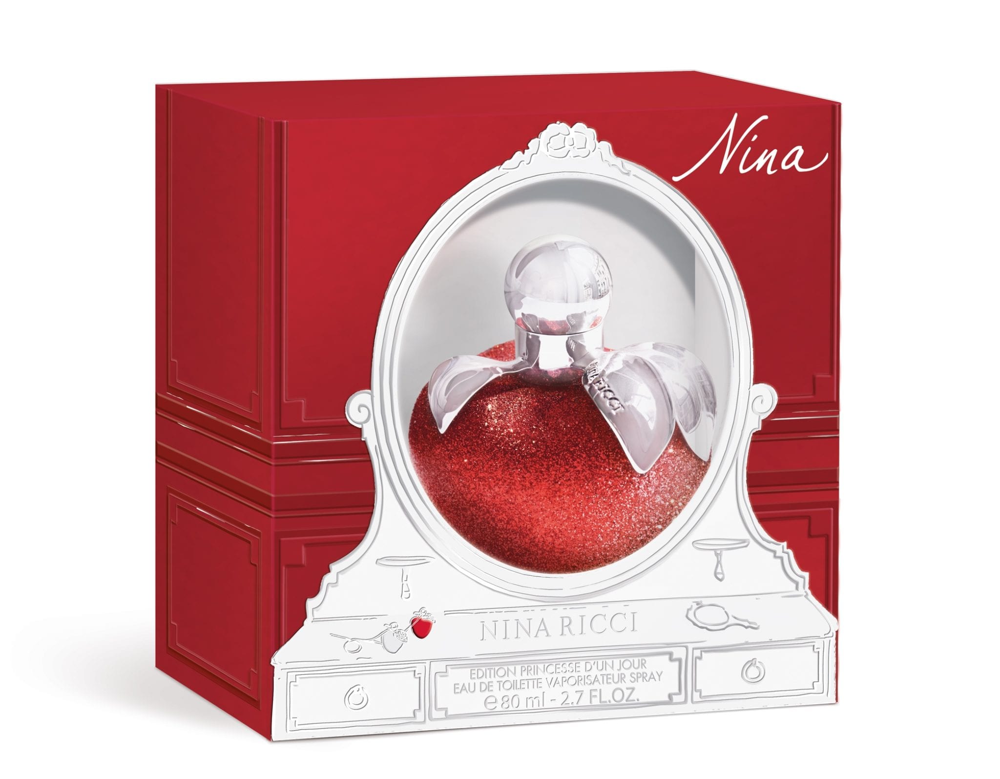 Cette fragrance laisse derrière elle un rayon de lumière pailleté : en tête, des fraîcheurs de sorbets – citron jaune de Calabre et citron vert Caipirinha – enveloppent d’insolence la Pomme d’amour. Elle se pique de vanille infusion et de praline, avant de révéler un bouquet de bois de pommier, de musc coton et de cèdre blanc. Cette nouvelle édition de l’Eau de Toilette Nina se niche dans un flacon-pomme Collector constellé de paillettes, dont le fond carmin conjugue le rouge sur des tons de vermeil et de lipstick. Un fruit aux feuilles argentées.