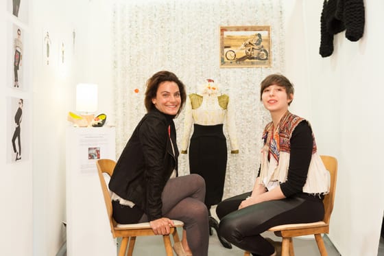 Ce prix a été décerné au duo français Céline Montousse et Juliette Imbert. Elles avaient réuni, il faut bien le dire, de nombreuses qualités pour le recevoir. Des études d’avocate tout d’abord pour Céline, puis des fonctions dans le droit tout en assurant durant 10 ans les achats pour la boutique de sa mère spécialisée dans la maille. Cette seconde activité devient sa priorité et elle décide de tout « plaquer » en s’inscrivant à l’école de maille de Paris, où elle rencontre Juliette Imbert, venant elle, du studio Berçot. Rencontre décisive, qui pousse les deux amies à devenir associées en reprenant un atelier et se spécialisant dans la maille. Sans grand moyen, mis à part un lot de 6000 pelotes de laine, la base de leurs créations est la « récup » et le recyclage. Leurs terrains de chasse : les puces, Guerrissol et les associations de récupération de vêtements.